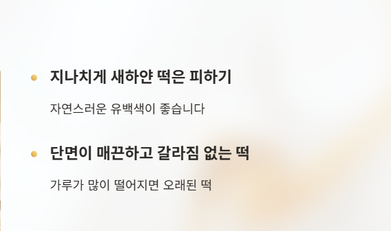 가루가 많이 떨어지면 오래된 떡일 가능성이 높다.
