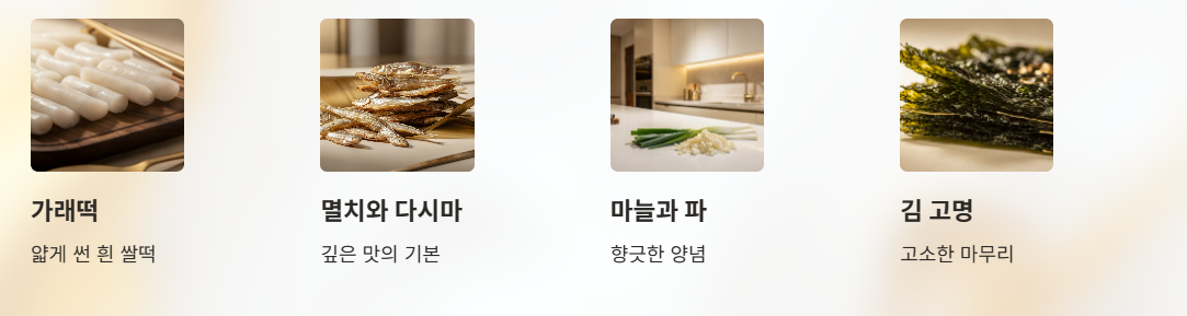 - 방앗간떡: 쫀득하지만 퍼짐 있음 → 멸치육수 떡국