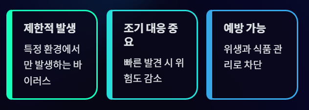 - 예방은 위생과 식품 관리가 핵심
