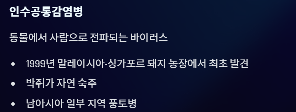 즉, 니파바이러스가 남아시아 일부 지역에서 반복적으로 발병하고 있는 풍토병이라는 점을 기억해야 한다.