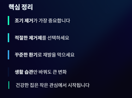 특히 습도가 높은 계절이나 환기가 잘 되지 않는 공간에서는 곰팡이가 빠르게 번지기 때문에 조기에 관리하는 것이 중요합니다.