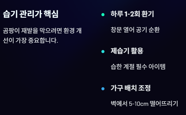 곰팡이 예방의 핵심은 습기 관리와 환기입니다.