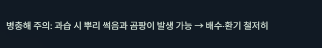 → 초기에는 배수와 통풍으로 예방, 곰팡이 발생 시 살균제 소량 사용