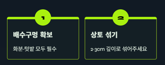 - 상토 2~3cm 정도 섞어 통기성 확보