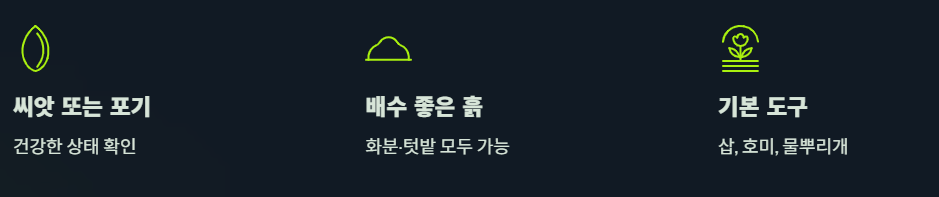 - 배수가 잘 되는 흙 (화분/텃밭 모두 가능)