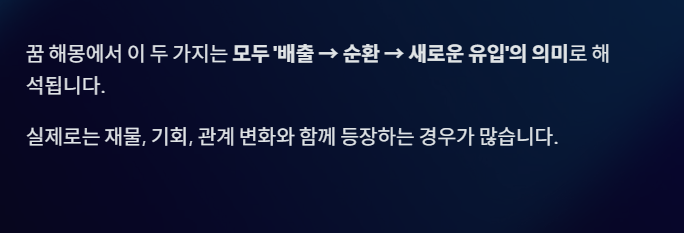 꿈 해몽에서는 의외로 해소·정리·재물 흐름과 관련된 경우가 많습니다.