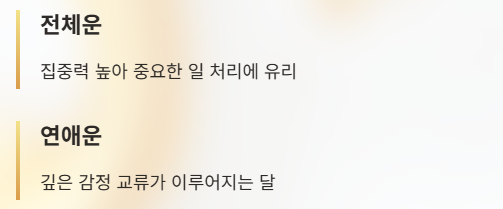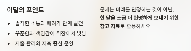 이번 달 운세는 미래를 단정하기보다, 한 달을 조금 더 현명하게 보내기 위한 참고 자료로 활용해 보세요.
