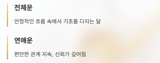 연애운: 안정적인 관계 흐름이 이어집니다.