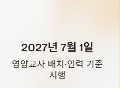 - 영양교사 배치 기준 및 급식 종사자 적정 식수인원: 2027년 7월 1일부터 시행