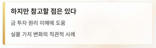 “금값이 오르면 실제로 이런 변화가 생긴다”는 점을 직관적으로 보여줍니다.
