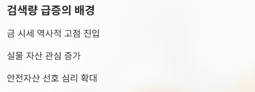 “저 금을 팔면 어떻게 될까” 같은 검색이 자연스럽게 늘어난 것입니다.