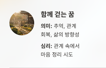 - 미해결 감정: 전하지 못했던 말, 해결되지 않은 갈등, 미뤄둔 마음의 짐을 반영합니다.
