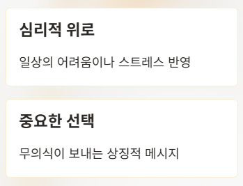 - 심리: 현재 스트레스나 피로에서 위로 필요