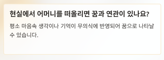 - 중요한 선택 앞: 무의식이 “엄마의 시선”을 상징적으로 보여주는 경우가 있습니다.
