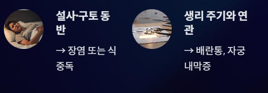 | 생리 중간 또는 전후 반복 | 배란통, 자궁내막증 |