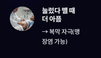 ✔ 점점 심해지는 통증 + 발열·구토·압통 → 즉시 병원 진료 필요