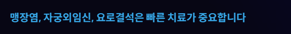 특히 맹장염, 자궁외임신, 요로결석 감염 합병증은 빠른 치료가 예후에 큰 영향을 줍니다.