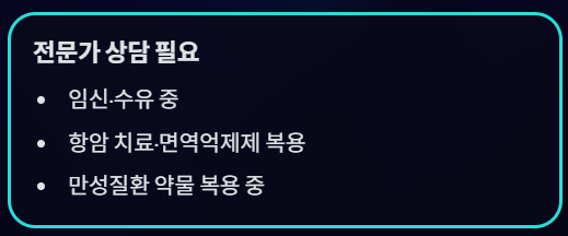 - 항암 치료 중이거나 면역 억제제를 복용 중인 경우