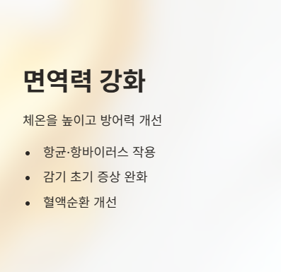 ✔ 생강은 따뜻하게 섭취하면 흡수와 체온 상승 효과 증가