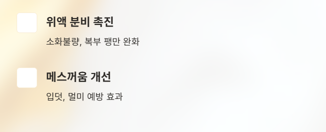 최근에는 항염·항산화 효과, 소화 개선, 면역력 관리까지 알려지면서 일상 속 건강 관리 식품으로 다시 주목받고 있습니다.