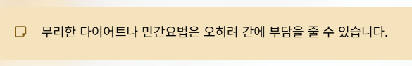 특히 무리한 다이어트나 민간요법은 오히려 간에 부담을 줄 수 있다.