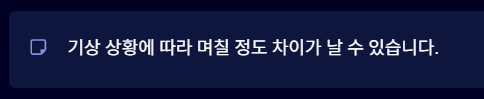 이 일정은 기상 상황에 따라 며칠 정도 차이가 날 수 있습니다.