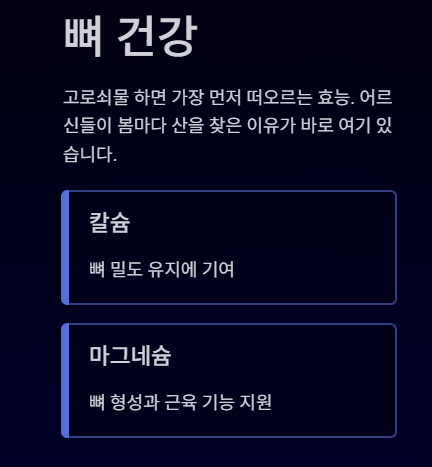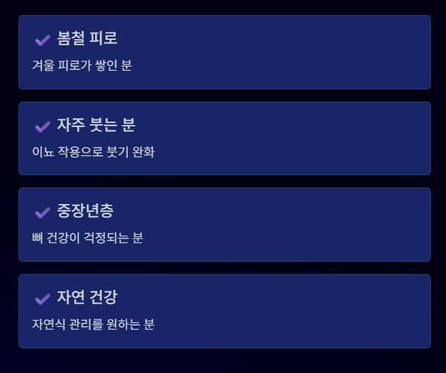 - ✔ 뼈 건강이 걱정되는 중장년층
