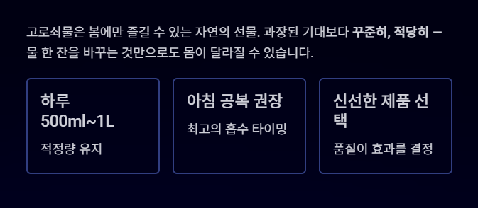 고로쇠물은 단순한 물이 아니라 자연이 주는 건강 음료라고 할 수 있습니다.